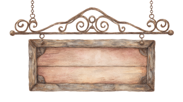 Vintage Wooden Hanging Signboard with Metal Scrolls