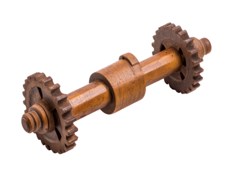 Rusty brown gear wheel isolated PNG on transparent background, cogwheel machinery part for engineering and mechanical design