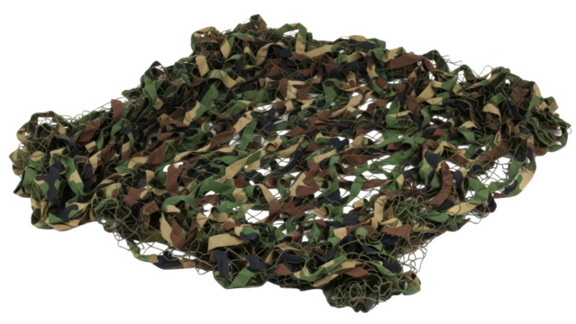 Camouflage netting with green brown and tan colors isolated on transparent background