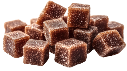 Brown sugar cubes and granulated sugar pile isolated on transparent background