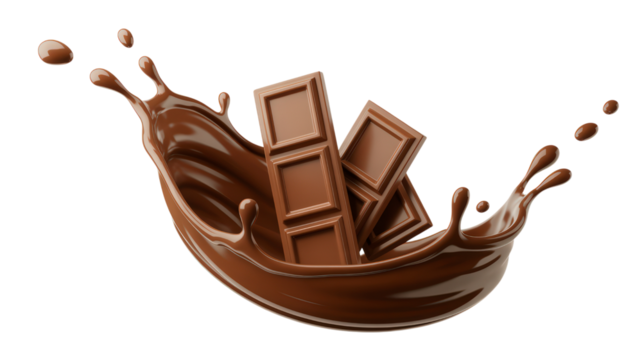 Chocolate Bar Pieces Falling With Liquid Splash Isolated On Transparent Background Dark Milk Chocolate Dessert Pieces With Splash For Confectionery Or Sweet Food