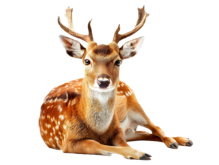 photo of a deer floating mid-air on isolated background