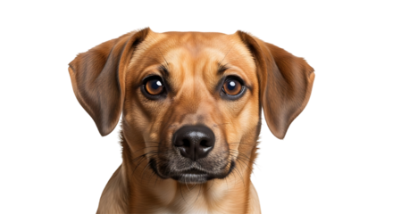 Happy Brown Dog Sitting Pretty on Isolated White Background