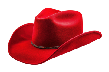 A red cowboy hat with a brown band. ,on transparent background.