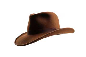 Stylish brown fedora hat on fashion accessory studio. Isolated on transparent background, png.