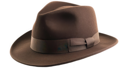 brown fedora hat with a black ribbon isolated on transparent cutout background, cut out, png