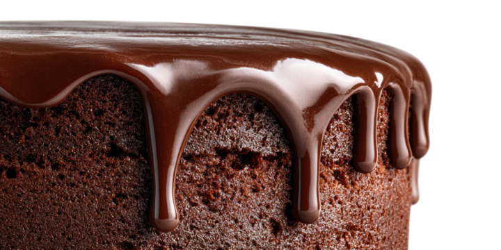 Decadent chocolate glaze dripping, rich dessert topping close up, transparent backdrop