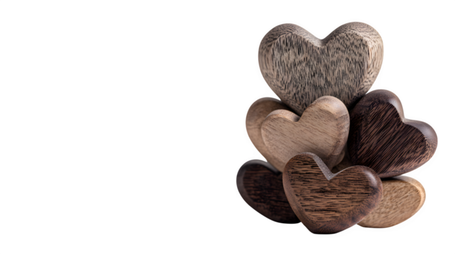 Stack of wooden hearts isolated on transparent background