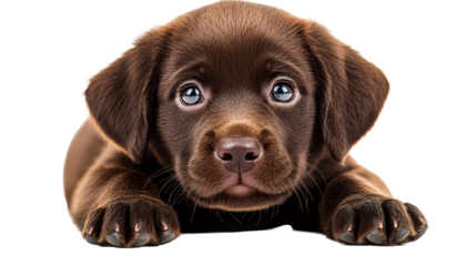 Cute Chocolate Labrador Puppy Wearing Santa Hat isolated on transparent background