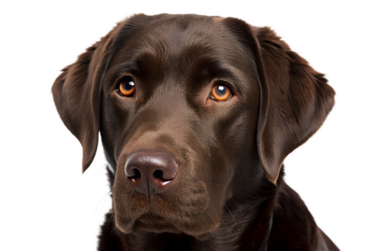 Closeup portrait of an adorable chocolate labrador retriever on black background, chocolate lab, labrador retriever, dog, pet, animal, canine, brown, portrait, headshot, closeup, isolated, black backg