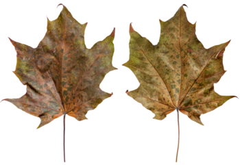 Brown autumn leaves of maple tree. Isolated on transparent background.