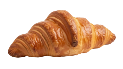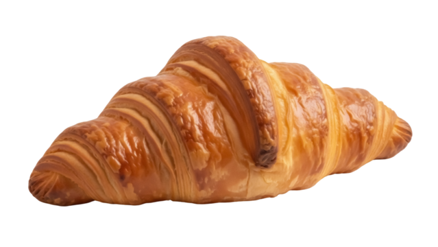 Golden brown croissant isolated PNG, flaky pastry on transparent background, delicious breakfast treat for bakery and cafe menus