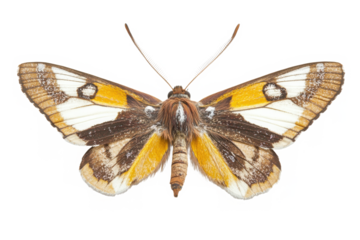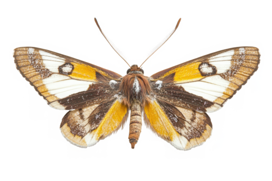 Detailed moth with orange and gray wings isolated on transparent background
