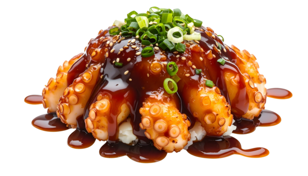 Delicious Takoyaki with transparent background, a tempting street food!