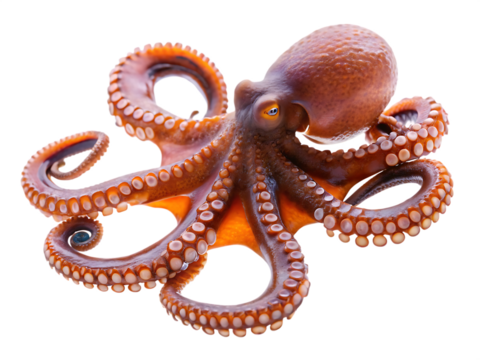 Octopus squid isolated on white background transparent PNG clipart.