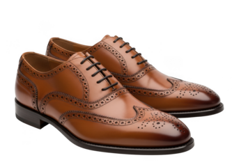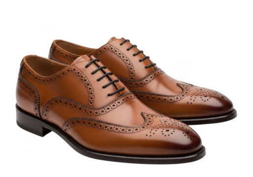 Classic tan leather wingtip brogue oxford shoes isolated on transparent background