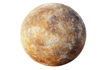 Textured brown planet with craters isolated on transparent background, 3D rendering of a celestial body for space exploration concepts