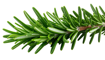 Close-up of fresh rosemary sprig with needle-like green leaves and brown stem