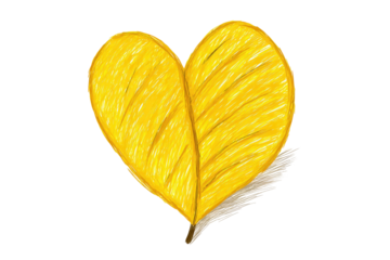 A yellow leaf shaped like a heart, with visible veins and a small brown stem