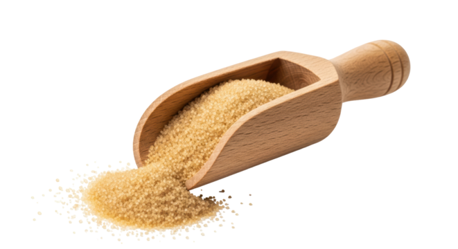 A pile of brown sugar, fine granules, and a rich tan color, is shown