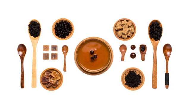 Brown sugar cubes and granulated sugar pile isolated on transparent background