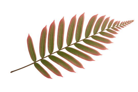 Delicate autumn fern frond with reddish tips isolated on transparent background