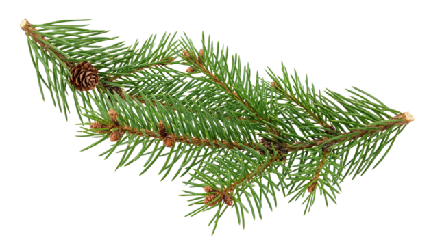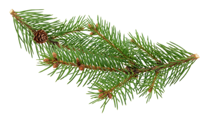Tree branch with green leaves and brown trunk isolated on a transparent background