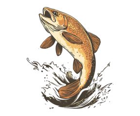 Freshly caught brown trout fish with detailed spots on a transparent background vector, showcasing wildlife and angling