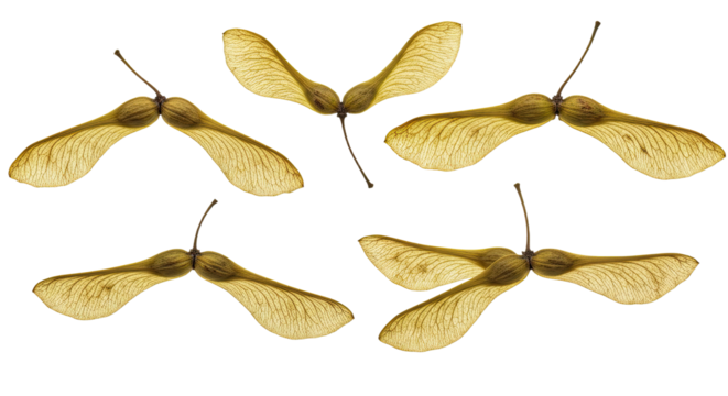 Five Maple Tree Samaras Seed Pods Isolated on White Background 2.