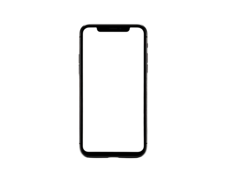 A front-facing smartphone with a dark screen, isolated against a black background