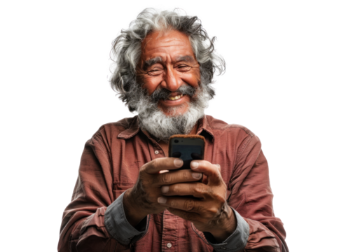 Senior Man with Tablet on Transparent Background