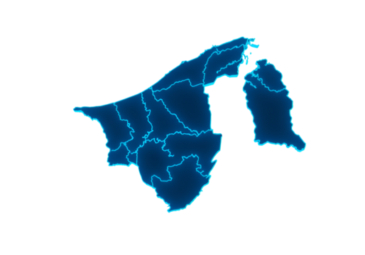 Abstract 3D Render of a Glowing Blue Brunei Map Isolated on Black Background