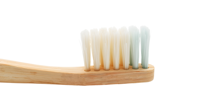 Bamboo toothbrush with black bristles isolated on transparent background