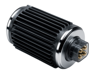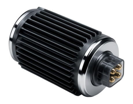 High-torque brushless DC electric motor with visible copper windings and a metal mounting flange, Isolated on Transparent and White Background