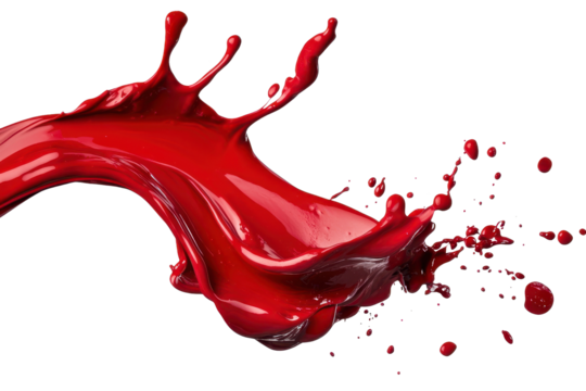 Dynamic splash of red paint creates a vibrant display of motion and energy against a clean background during a paint mixing activity in a studio setting