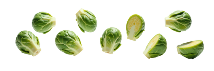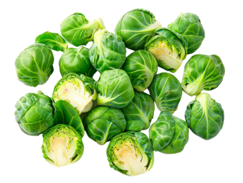 Fresh Brussels sprouts isolated on a white background. A healthy green vegetable rich in nutrients, perfect for various culinary dishes.