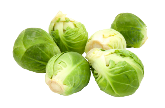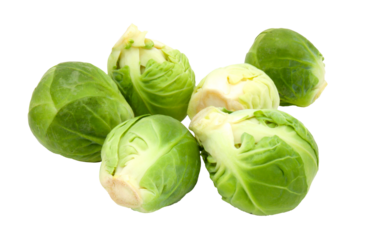 Fresh green Brussels sprouts ready to cook isolated on transparent background.