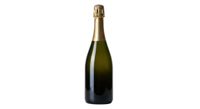 Green bottle of sparkling wine with gold foil and blank label, celebrating special occasions, isolated on transparent background