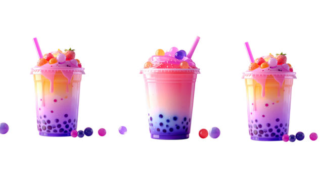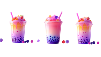 This image showcases a colorful and enticing 3D rendered bubble tea with jelly toppin