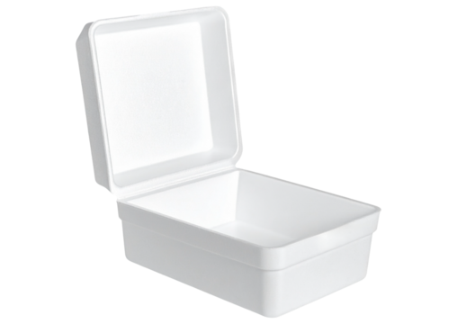 Black closed styrofoam box on transparent background. Food box for food to go, delivery. Isolated object