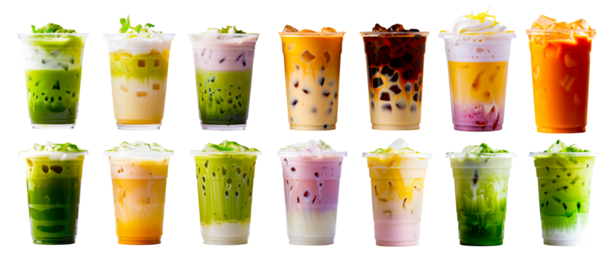 Various Bubble Tea or Baba on white isolated on clear png background and transparent background. food drink and dessert concept for cafe and restaurent, AI generative.