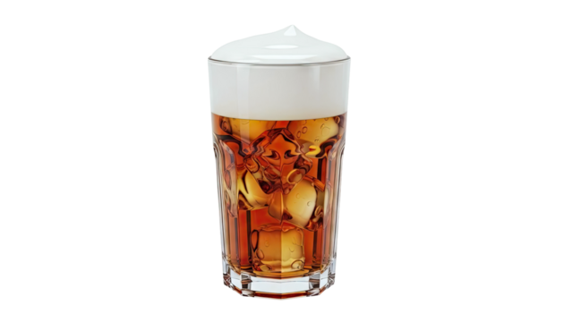 Glass of iced tea with foam on a white background