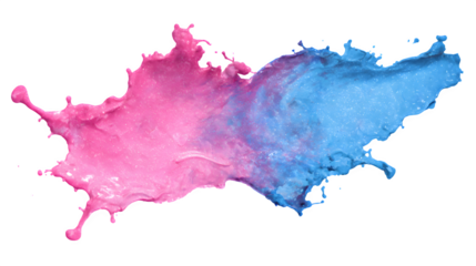 Abstract pink blue paint splatter shape transparent PNG isolated background. Art brush stroke, vibrant tasty colors, gender reveal, strawberry bubblegum flavour