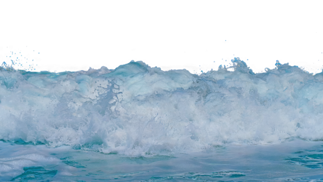 Ocean wave splash with white sea foam and turquoise water, isolated on transparent background, perfect for summer beach themes, water textures, and marine visuals