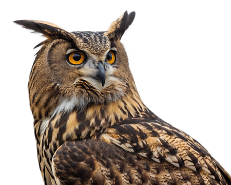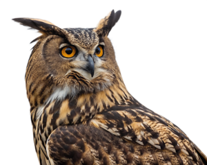 Detailed Portrait of an Eagle Owl with Intense Gaze on transparent background