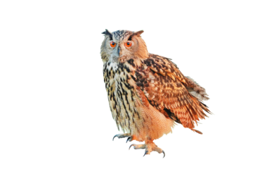 Beautiful standing Eurasian eagle-owl isolated on transparent background png file