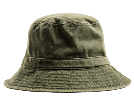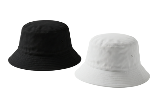 White bucket hat lying flat, studio-produced against transparent backdrop, prepared for graphic design and branding mockups