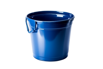 Overhead shot of a blue plastic bucket with handle isolated on transparent background