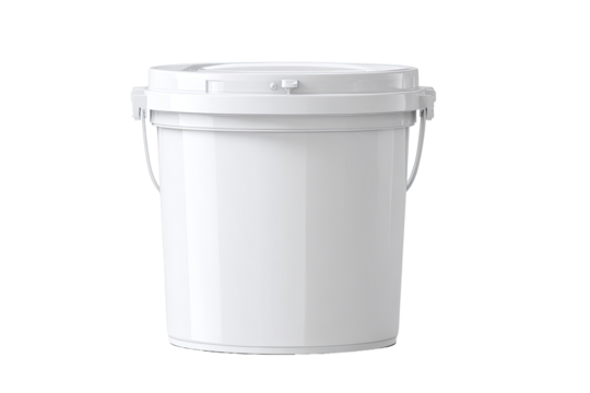 Bucket with green paint, paint running out, isolated on transparent background, cut out