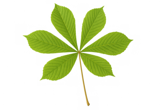 Horse chestnut leaf cutout showing detailed green foliage and veins on transparent background